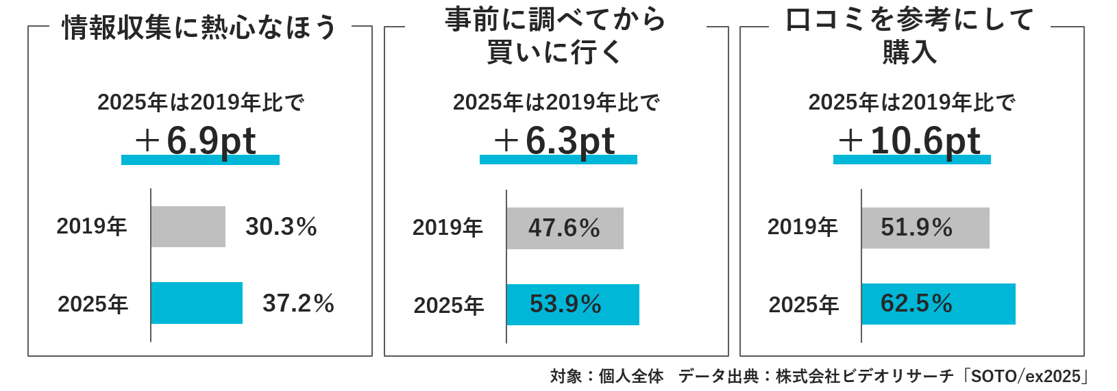 2019年と2025年を比べると、購入前に情報を確かめる動きも、以前より目立っています。