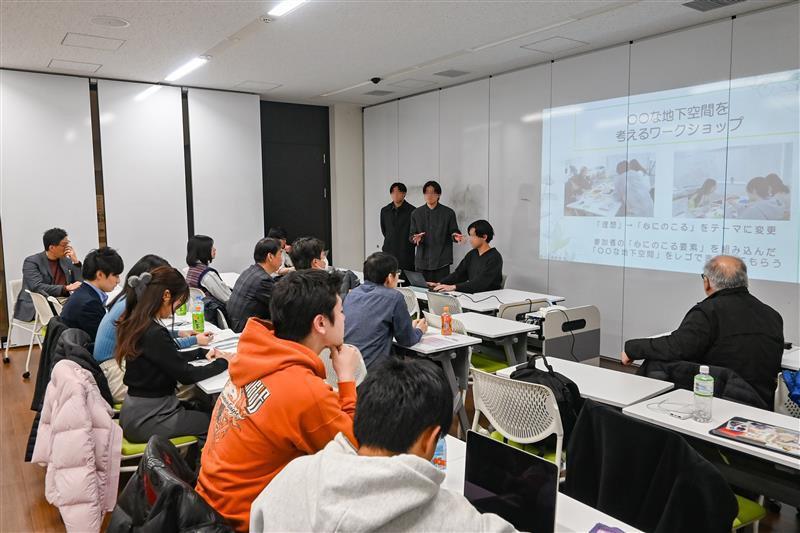 その後、複数回の演習にて鶴田利郎准教授、中西紹一兼任講師、望月俊男兼任講師の指導のもと、学生の方々が2つのグループに分かれて、学内ワークショップを企画・開催。参加者の発言内容を詳細に分析・考察しながらアイデアを練り上げ、2026年1月15日に、生田キャンパスにて成果発表会が行われました。