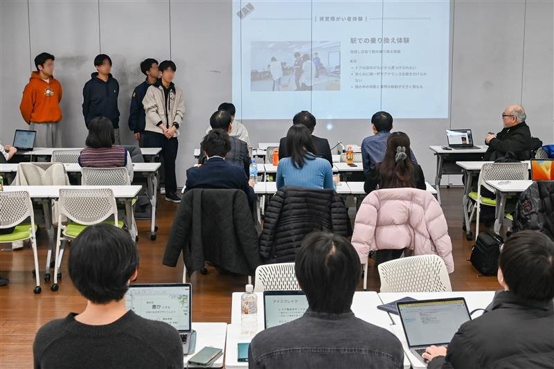 その後、複数回の演習にて鶴田利郎准教授、中西紹一兼任講師、望月俊男兼任講師の指導のもと、学生の方々が2つのグループに分かれて、学内ワークショップを企画・開催。参加者の発言内容を詳細に分析・考察しながらアイデアを練り上げ、2026年1月15日に、生田キャンパスにて成果発表会が行われました。